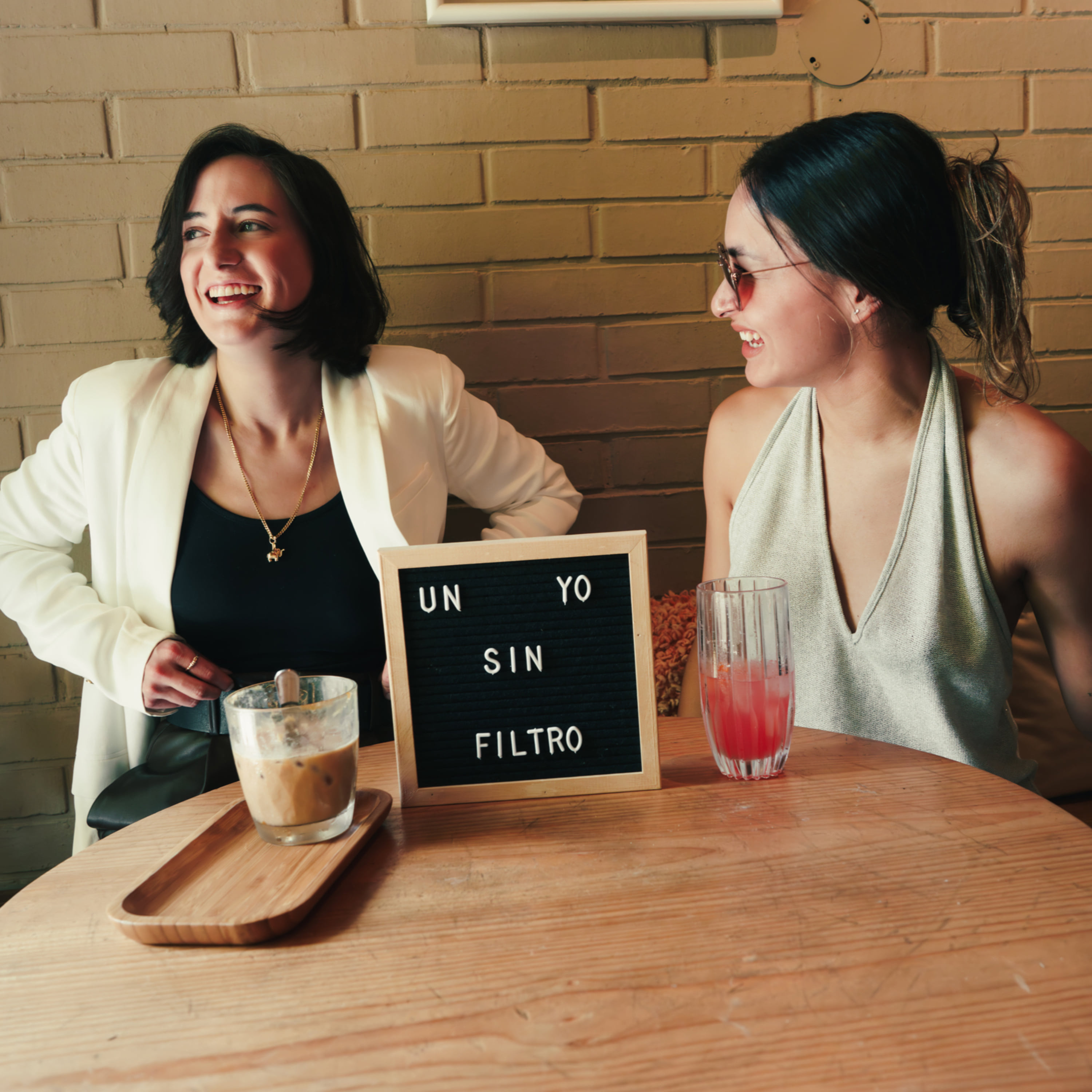 Begleite zwei Freundinnen in einem Raum für ehrliche Gespräche, die zur Reflexion und zur Suche nach Authentizität einladen. Verwundbarkeit ist willkommen.