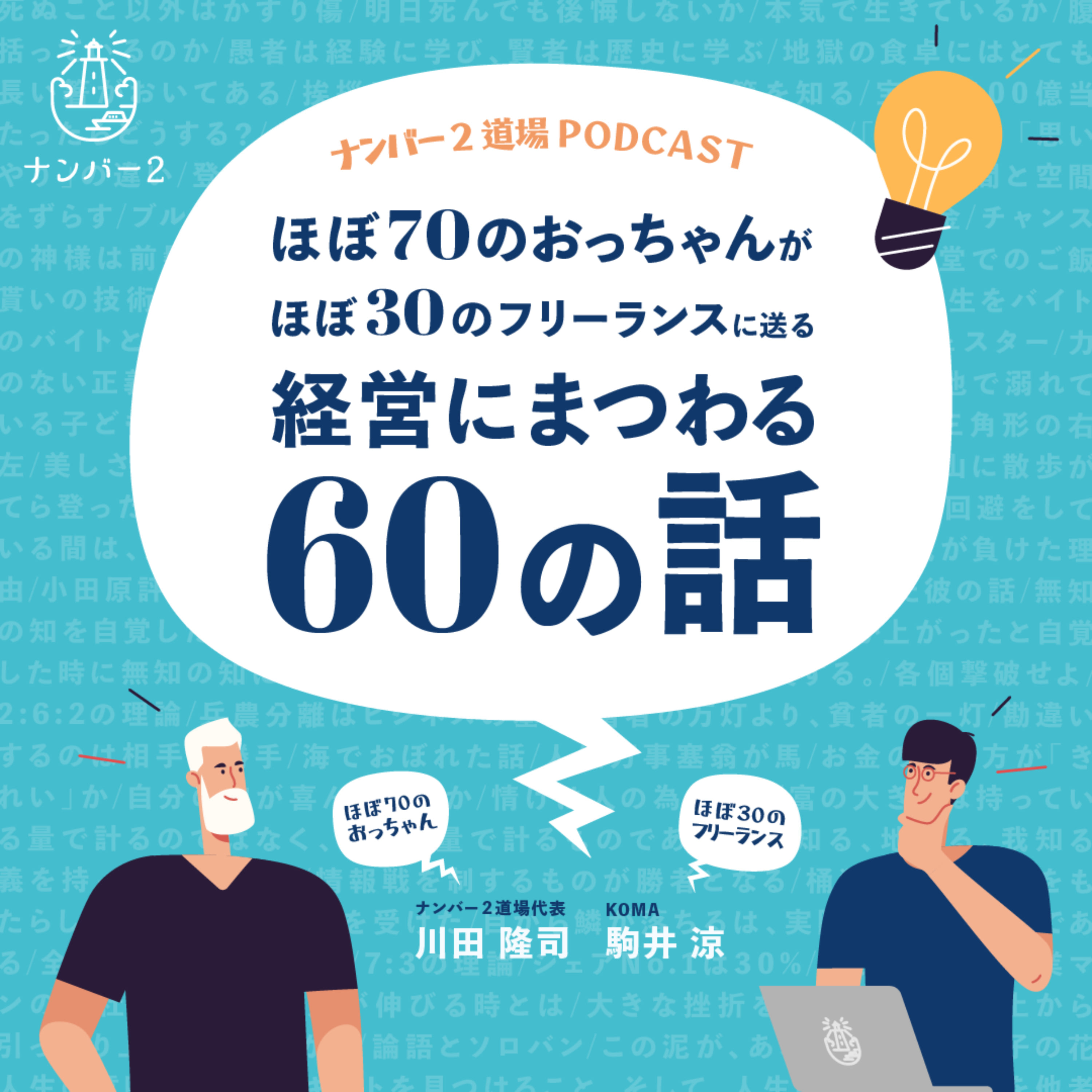 È un podcast di business in cui l'esperto Kawada e il giovane freelance Komai parlano sinceramente di 60 argomenti riguardanti la gestione delle piccole e medie imprese.